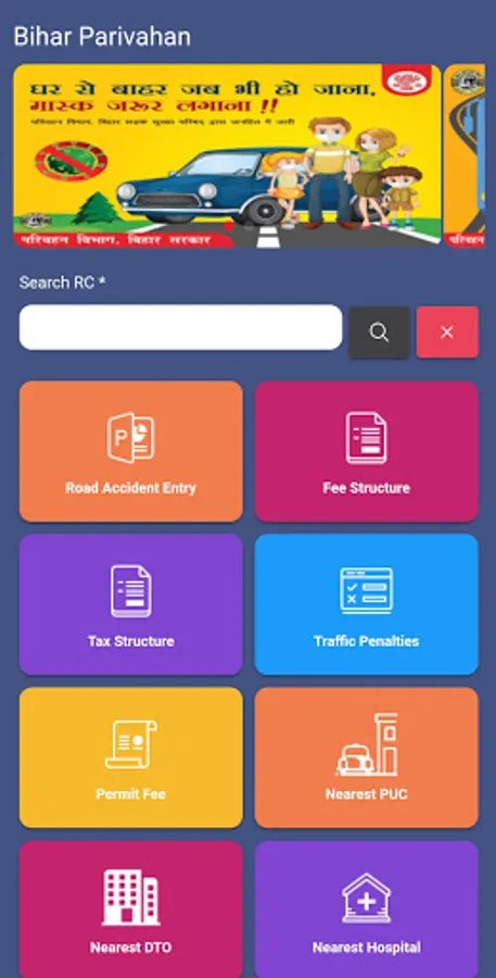 This app can help to search RC details, Tax Structure, Fee Structure, Permit Fee, Nearest DTO, Pay MV Tax etc.