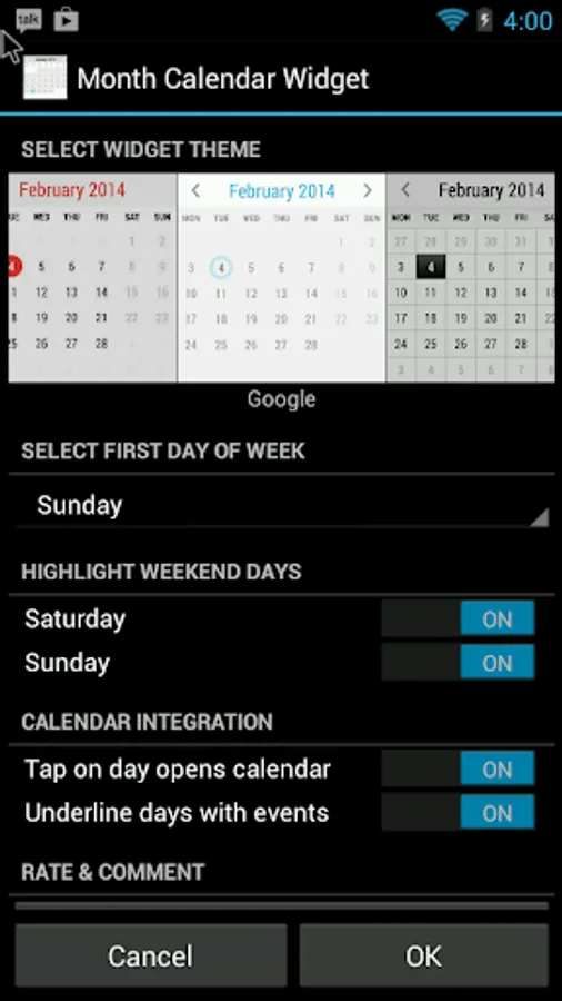 - Choose one of premade 10 themes (Transparent, Dark, Light, Google, iOS, Sense, KitKat, Shades, Material Dark and Light)
