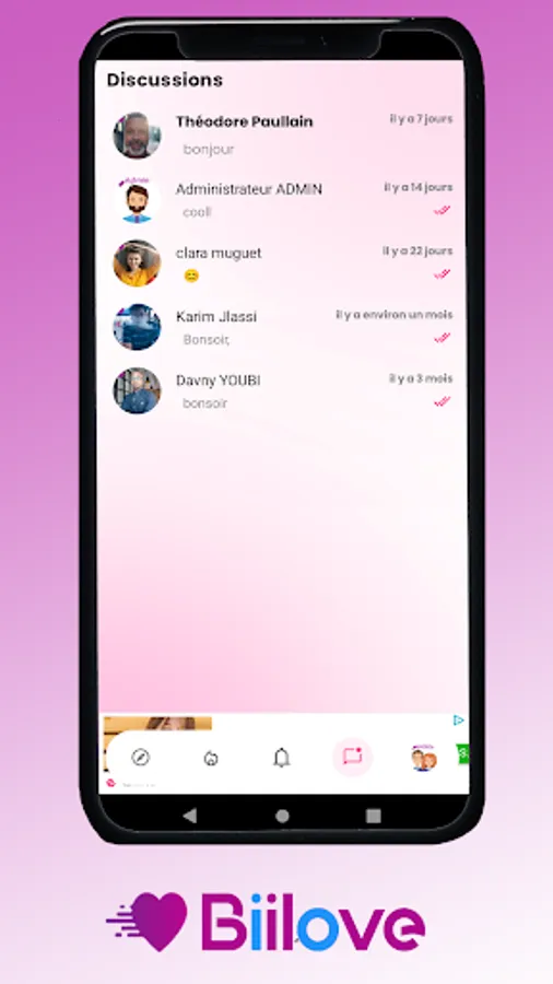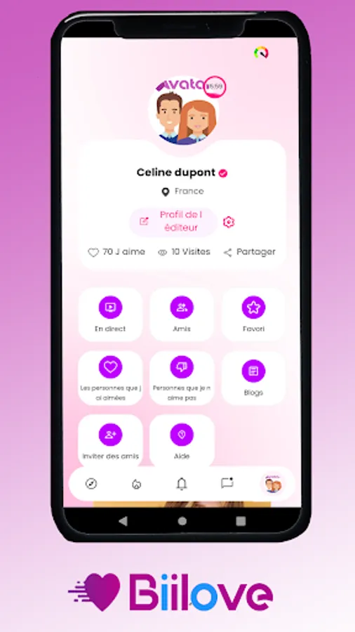 • Être averti d'une notification lorsque des membres de biilove aiment votre profil.