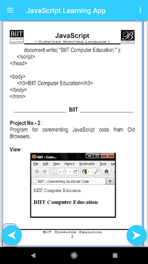 Please send your suggestions regarding this JavaScript Training App by email at biit.bhilai@gmail.com.