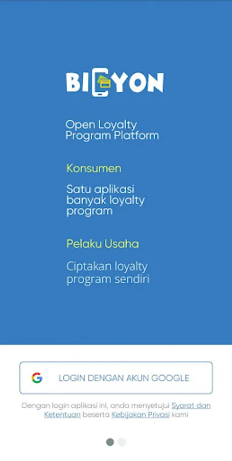 (1) Platform Biiyon yang terdiri dari aplikasi konsumen (Biiyon) dan aplikasi pelaku usaha (Biiyon Merchant) berusaha untuk menghubungkan konsumen dan pelaku usaha dalam komunitas loyalty program. Siapapun anda yang memiliki jenis usaha apapun, baik online maupun tidak, dapat memanfaatkan platform Biiyon ini.