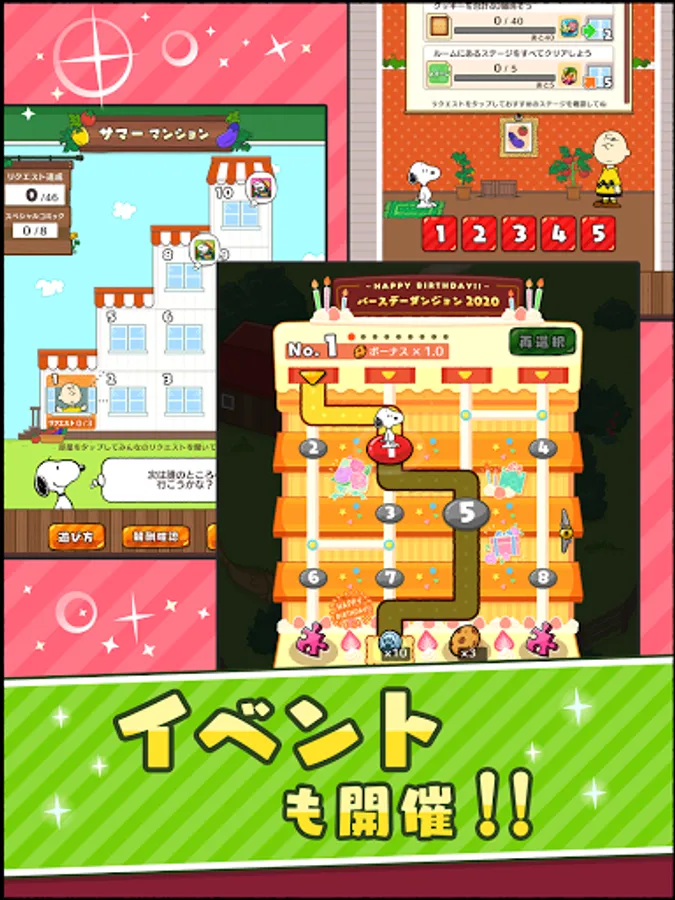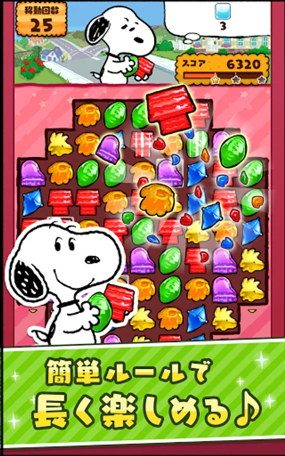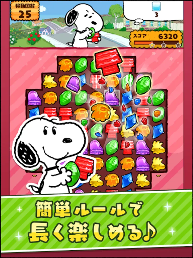 ・I want to enjoy a 3-match puzzle game with my cute Peanuts friends using the Snoopy app.