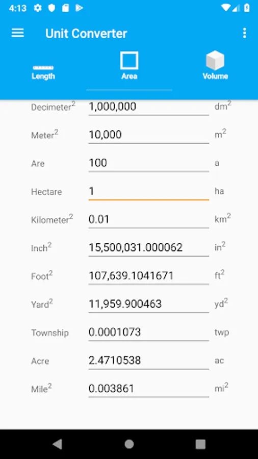 "Unit Converter" currently contains conversions for length, area, and volume but other types are going to be added soon to the updates.