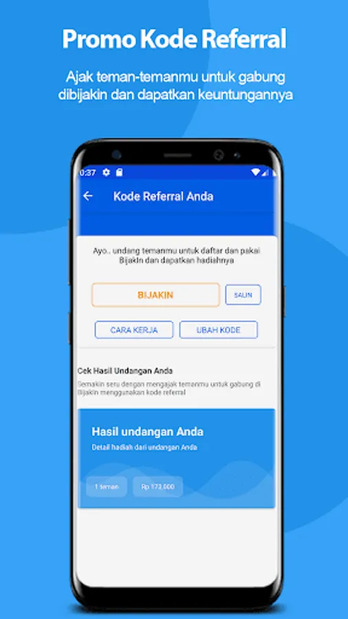 There are many attractive promos that you can get in the Bijakin application. There is a Referral promo from wise, invite your friends to join and use the Bijakin application and get an attractive bonus.