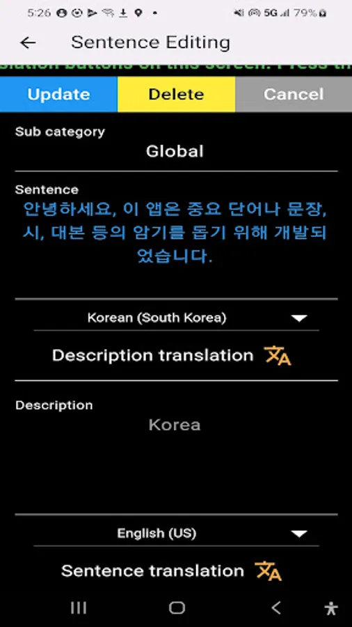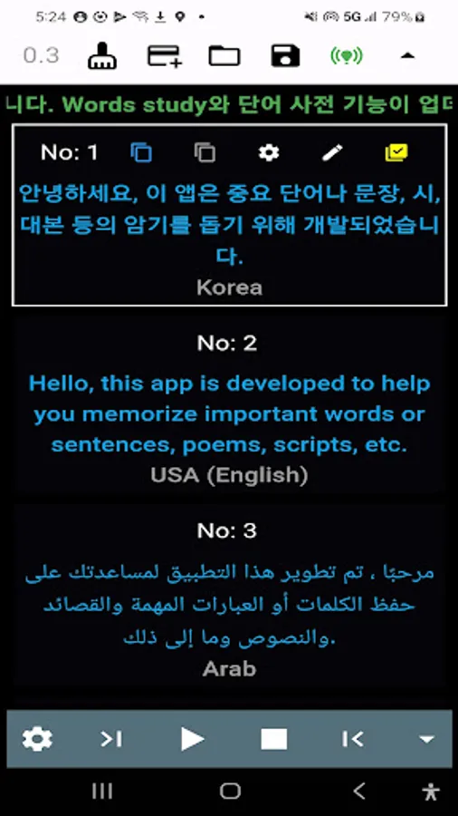 - 여러개의 문장을 등록하여 선택 및 연속 재생
