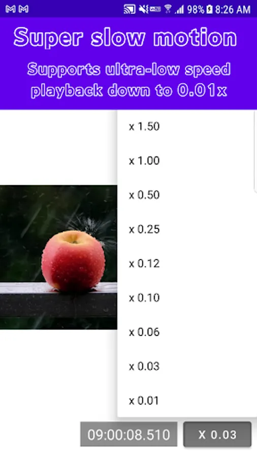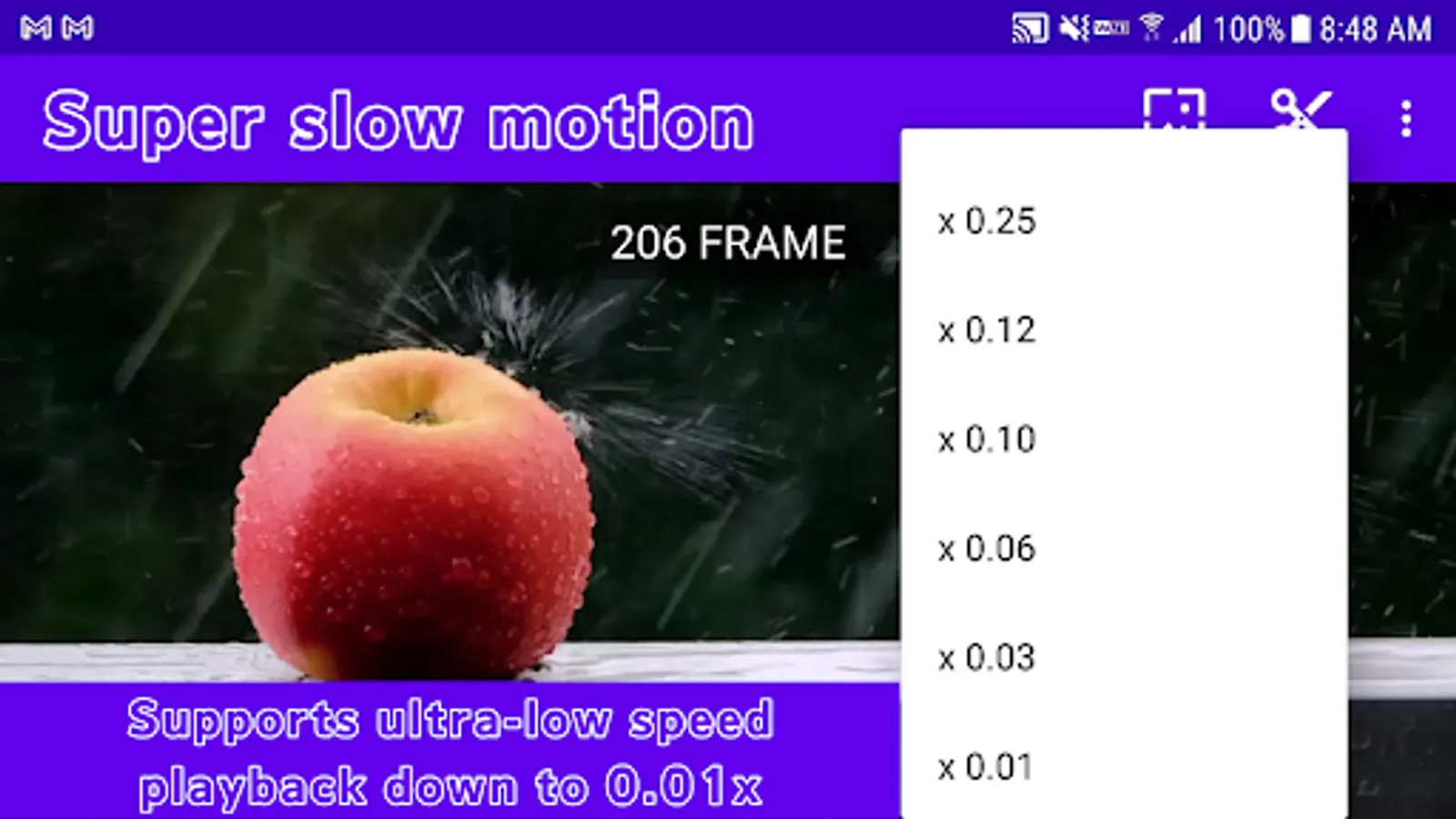 In addition to normal playback speed, this application supports super-slow playback at 0.25x to 0.01x. Never miss a decisive moment!