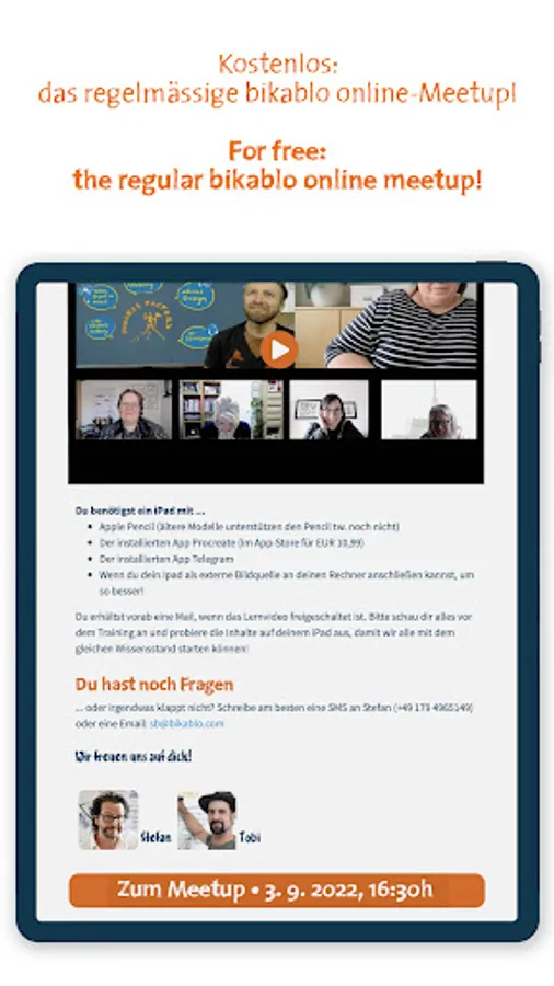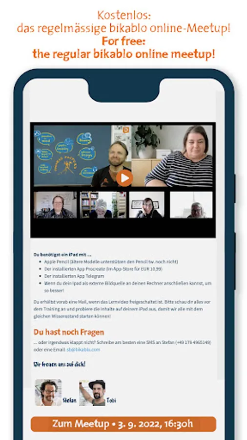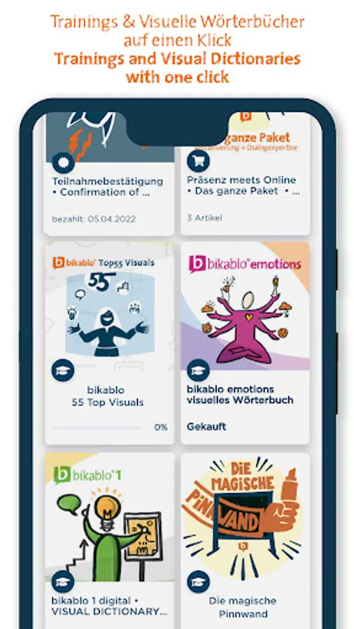 With our app, you always have your bikablo purchase products with you - even when you're offline (selected content available in English):