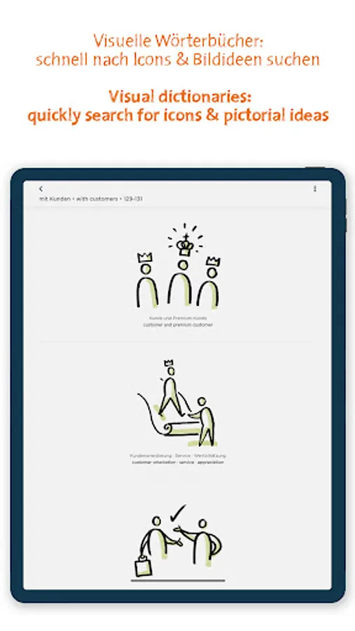 - Visual dictionaries with hundreds of icons, key images and poster templates.