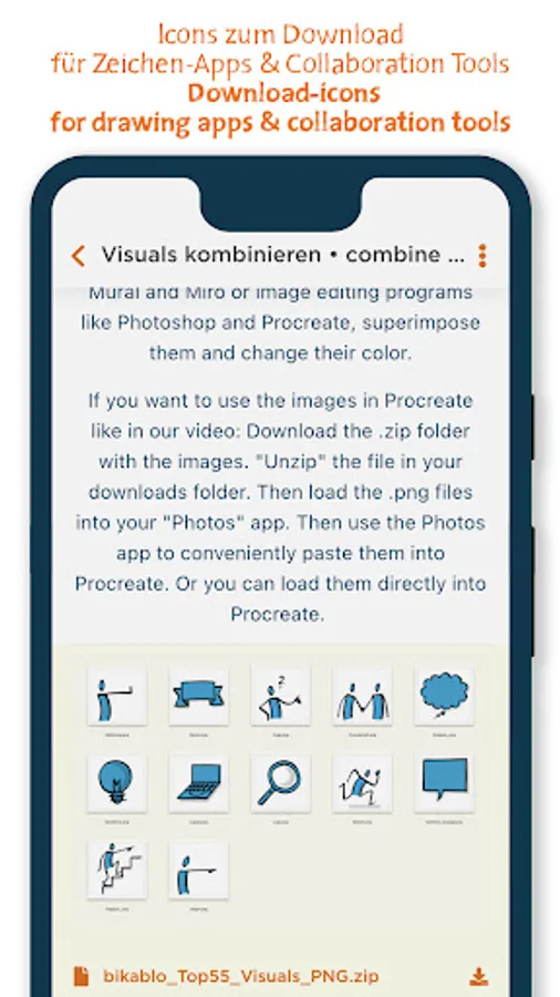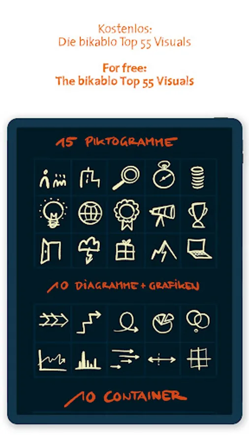 Free of charge: The icon collection "55 Top Visuals" with the most important icons, plus exclusive step-by-step instructions, learning videos and downloads.