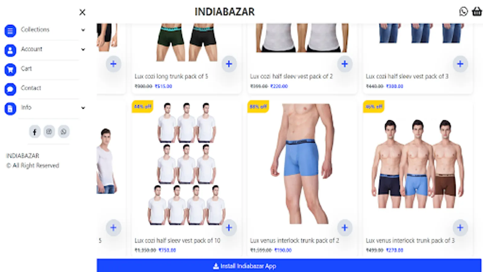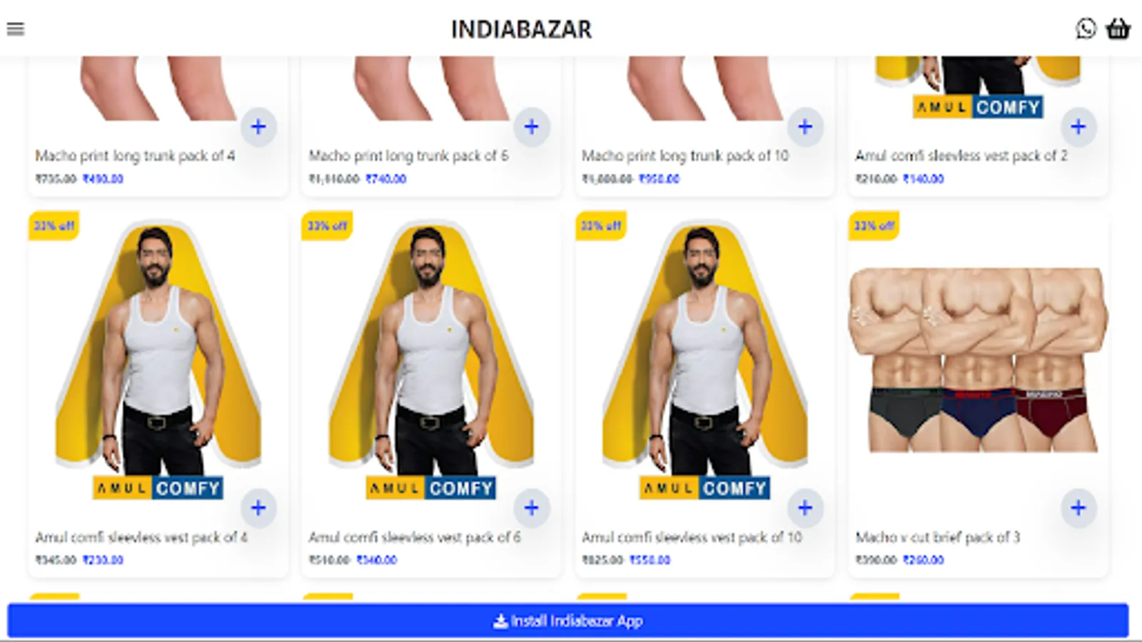 Our app brings you a wide range of high-quality innerwear, nightwear, loungewear, and healthcare products for both men and women. Explore our collection of fashionable apparel that not only looks great but also prioritizes your comfort. Additionally, we offer a discreet selection of personal care and sexual wellness products. Shop conveniently, stay fashionable, and embrace a healthier lifestyle with IndiaBazar24!"