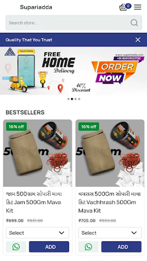 we are in the 3rd sugment know with home delivery of combo pack, not need to go out, no need to search for product just on one client you can bring your combo to your home, just go to play tore download our aap supari add and order from that and also visit our website www.supariadda.com for all the details, photos and video's of real product, also visit our shop in city,