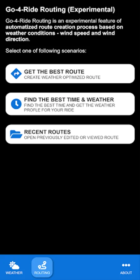 Besides cycling focused weather forecast, Go-4-Ride App has an experimental feature of automatized route creation process based on weather conditions - wind speed and wind direction.