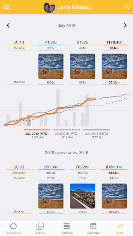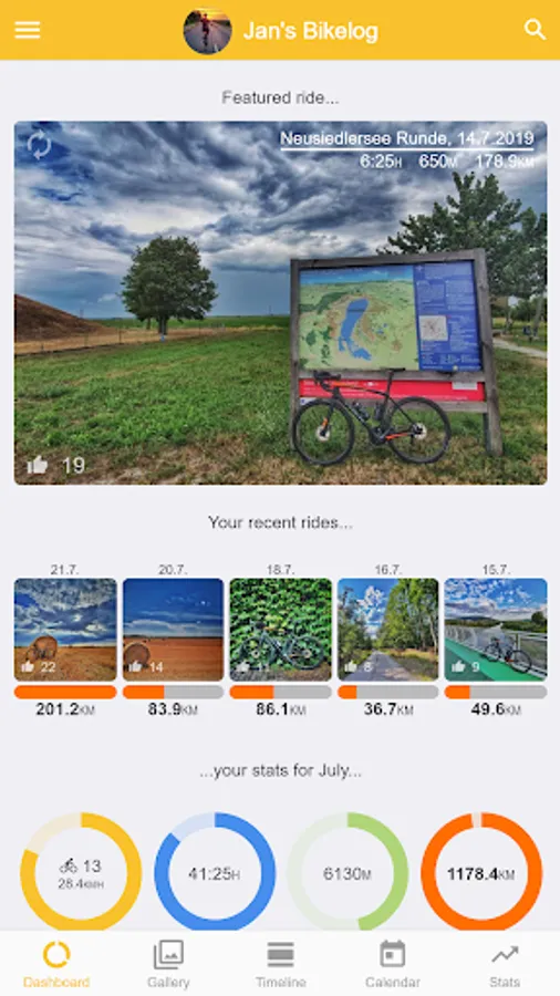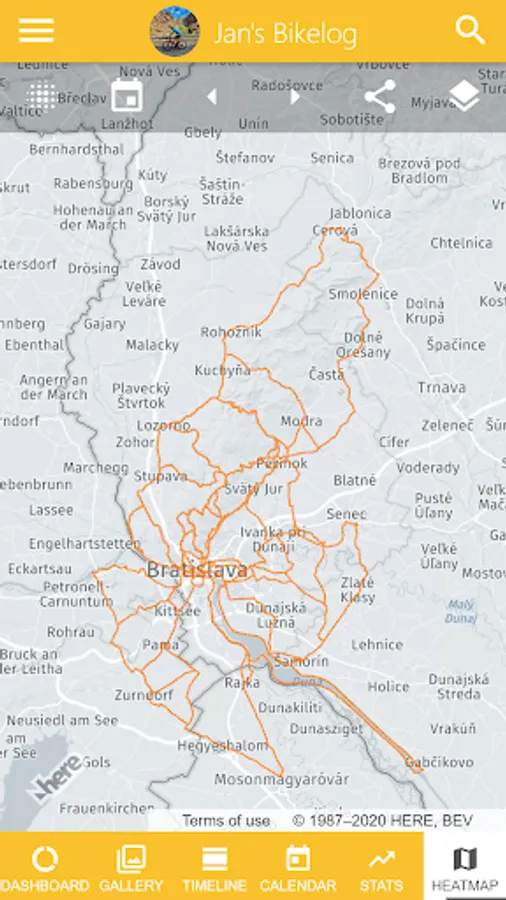 Bikelog app reviews and visualizes your bike rides recorded in Strava. It gives you an overview of your cycling history in various views (gallery, timeline, calendar, statistics, charts and heatmap).