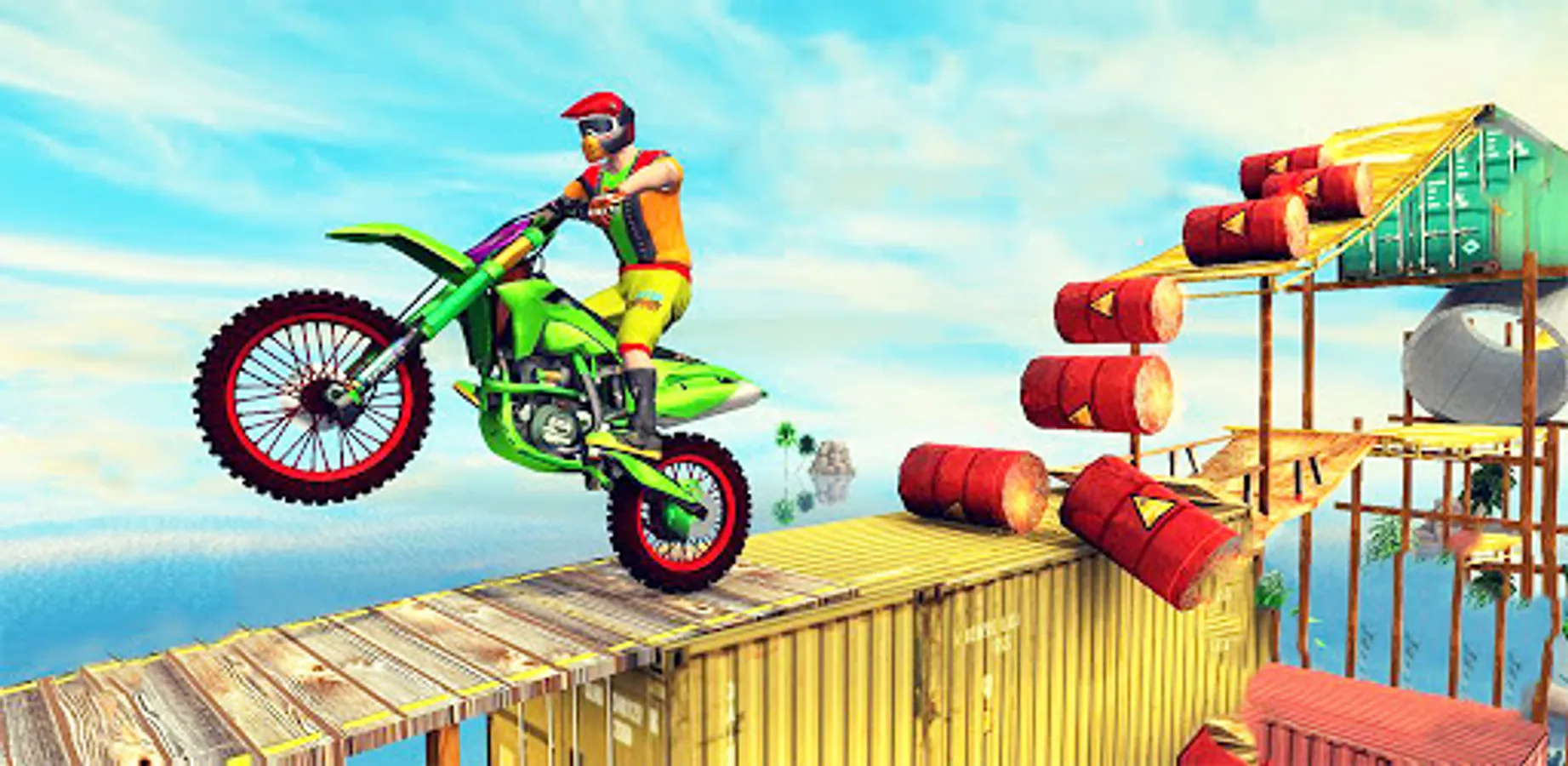 he feeling of driving a real stunt bike in bike race game. Press the gas button to move your stunt bike, press break to avoid hitting any obstacles & jump button is also provided in this free game. Perform back/front flips for extra rewards to rank up in bike games.