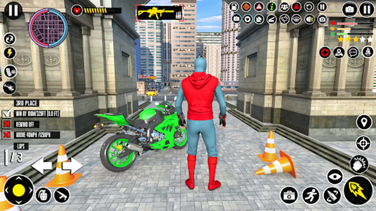 Make the most of Miami Hero games this superhero mega ramps games occasion of Miami Rope Hero to enjoy rope Miami Hero games world’s number one super bike stunt which is front Miami rope Hero games of your android screen crime rope Hero games in the form of Superhero battle mission extreme stunt racing. Try to explore real open world games new world of free bike racing games by entering superhero transformation games into action category and taste the finest tangs of light speed bike in practical form. This ultimate bike racing takes you away from the world Mafia Superhero rope hero by offering you rope hero death rescue experience which you can spider simulator games enjoy by taking control of crazy moto bike. Remove your daily superhero survival mission routine tough boring tensions and frustrations by leading Crime gangster mafia game extreme bike races from front and make show of your super special bike stunt controls crime city rope during extreme challenge stunt Spider Game.