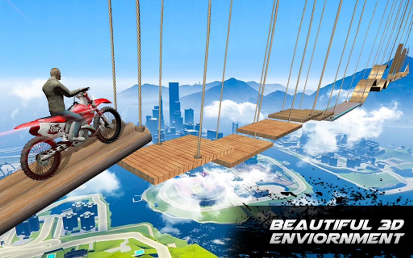 The game starts with the awesome level in the middle of the sky where you have acceleration, brake and tilt controls of the bike. Drive very careful from high jumps and sides of tricky tracks. Collect as many coins you can. You can double your coins with video ads. Buy 3 Moto Drivers with your cash, and unlock all the levels. All the tracks are created like a real bike race tracks which have easy to challenge trials. Don’t hit with hurdles and Dynamites, be smart enough and drive professionally. Maximize your stars on each level so that you can compete with the pro-bike driver of the whole world.