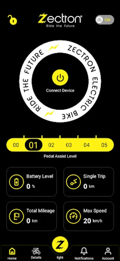 1. You can control your ebike’s speed, switch light and lock and unlock operation through Bluetooth. During the period, you can also check the driving speed, mileage and electricity of ebike in real time on the Home interface of the APP.