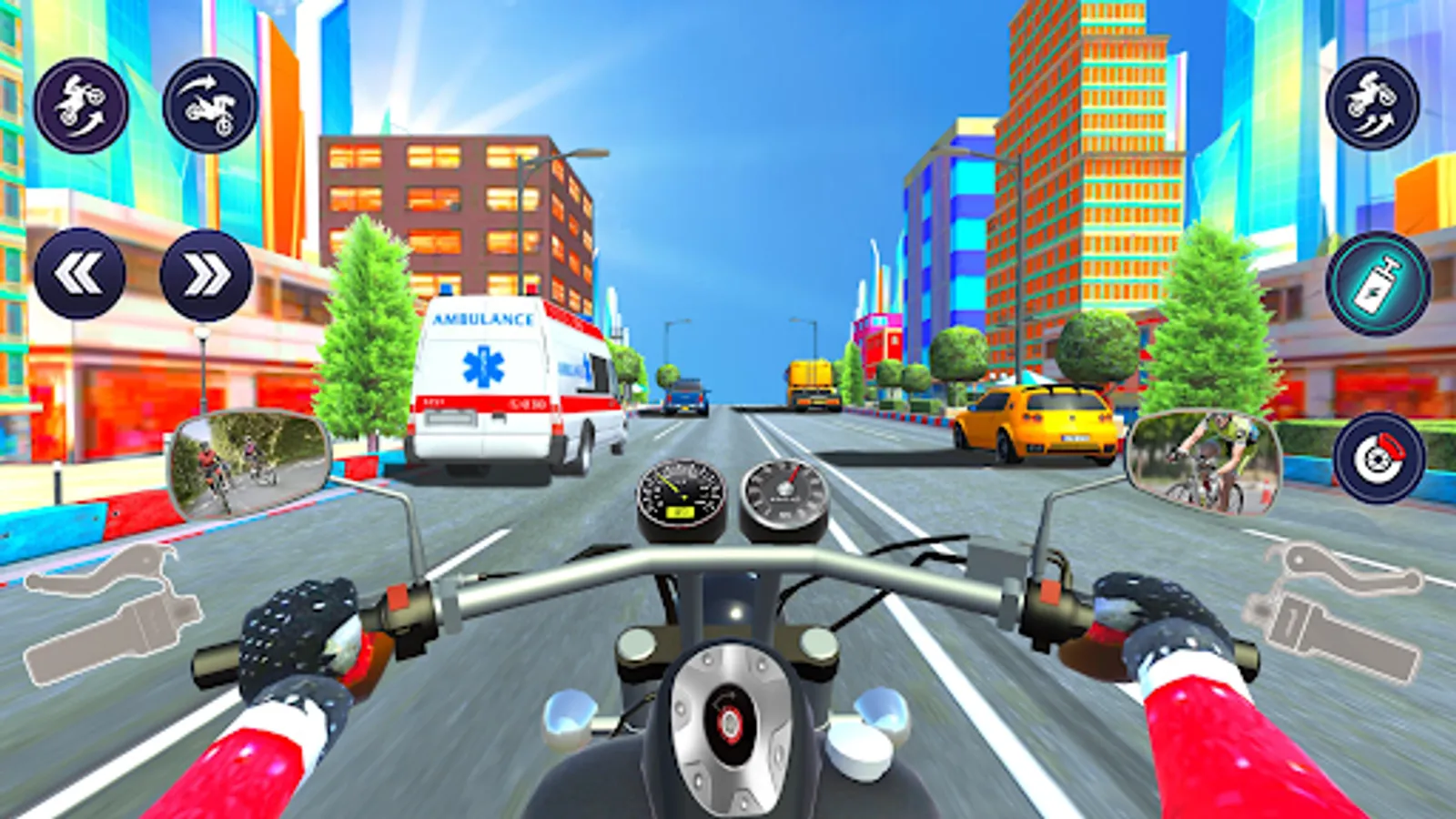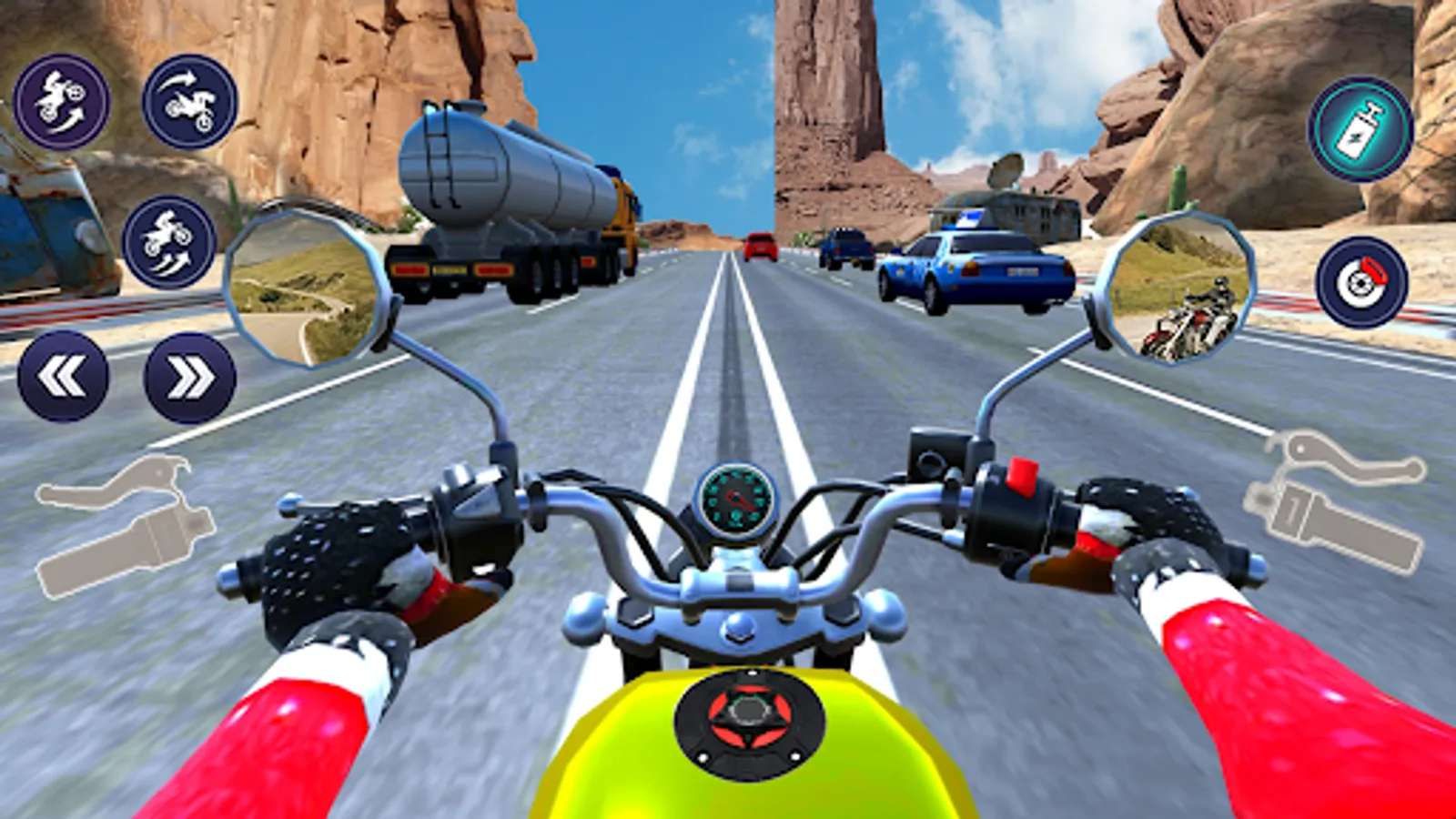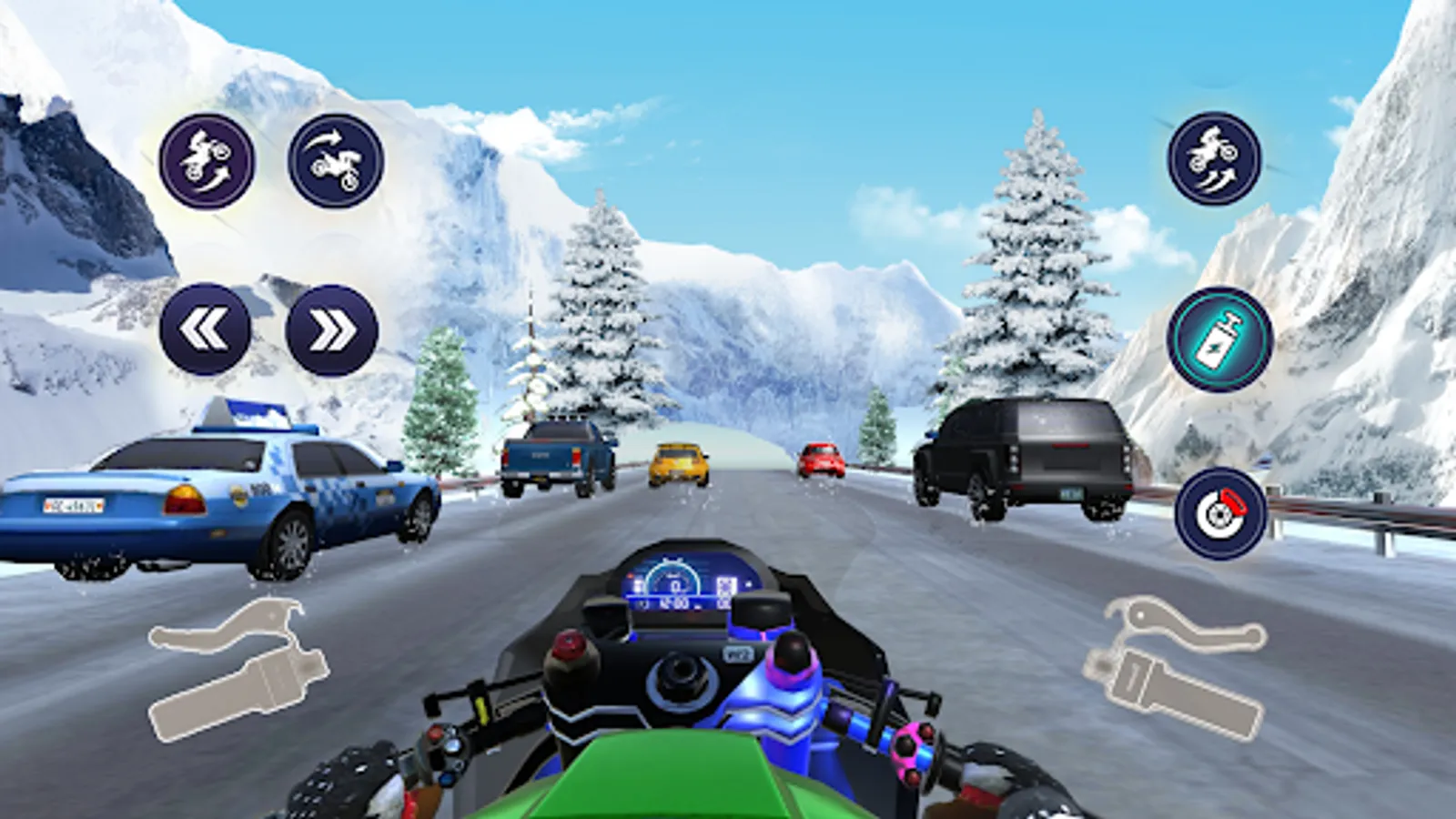 This motorcycle games have multiple environments for you to enjoy & play best motorcycle racing game 2023. This bike racing comes with four major enviroments City Bike Racing Mode, and Snow Bike Driving Mode,