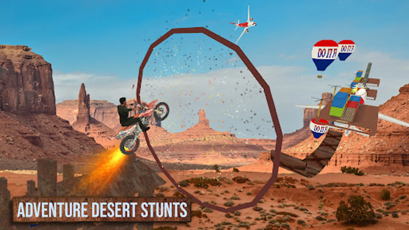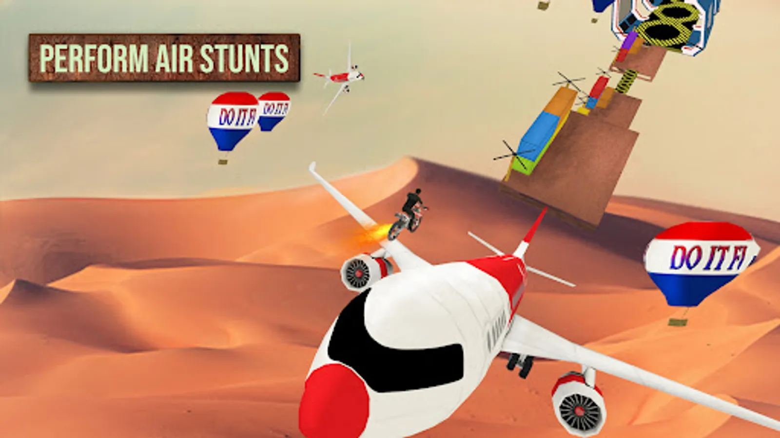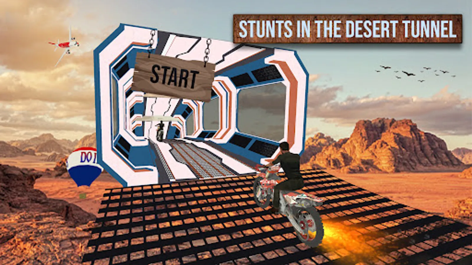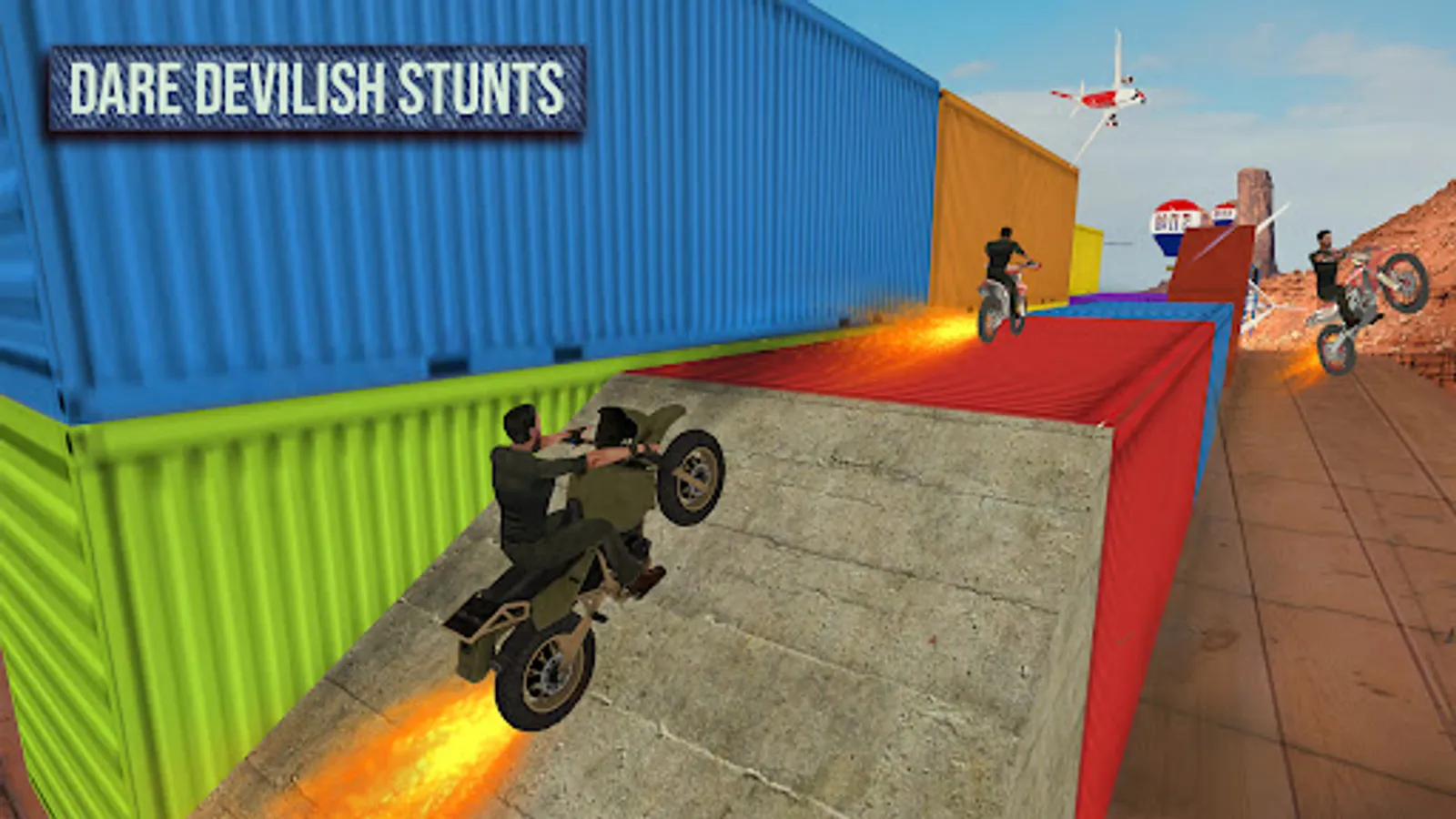 It's time to put your bike-riding talents to the test with some big motorbikes and dirt bikes. To participate in bike racing games and set impossible bike stunt game records, choose your motorcycle. Do flips and unimaginable acrobatics with your new bike by balancing your bike racer on a stunt bike. You have a tough, incredibly difficult bike stunt game waiting for you with mega ramps, a rolling circle and an Aeroplan crossing. When performing high, long ramp tricks, try to maintain your challenging stunt bike's balance and land safely.