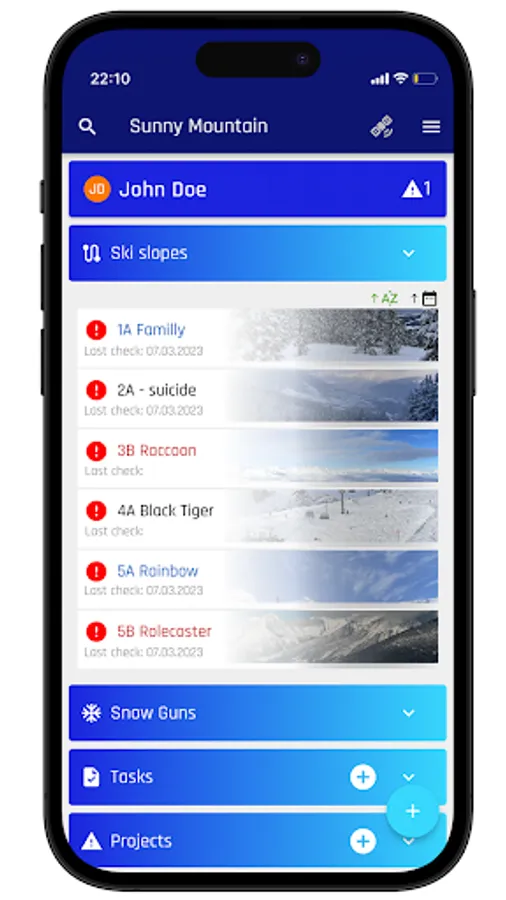 It is a task manager app adapted to the specific needs of the environment of bike parks and ski areas - management of trails, slopes, snow vehicles and much more - created to optimise and improve operations of any mountain resort. It makes distribution of tasks, recording work & control checks, opening/closing individual trails, slopes, sections, and all of the organisation simpler than you could imagine, and will make your life easier as well.