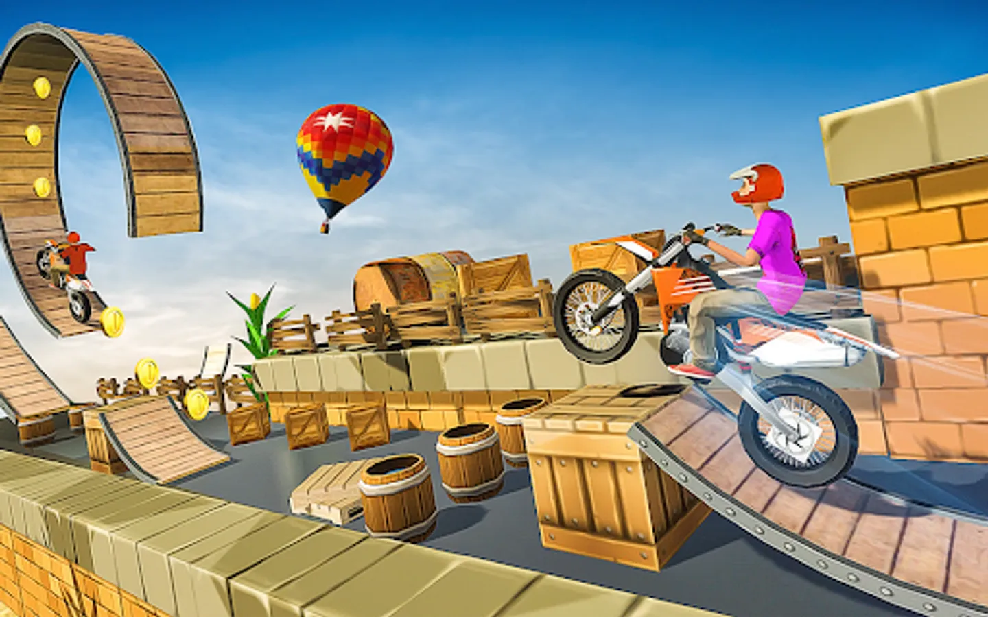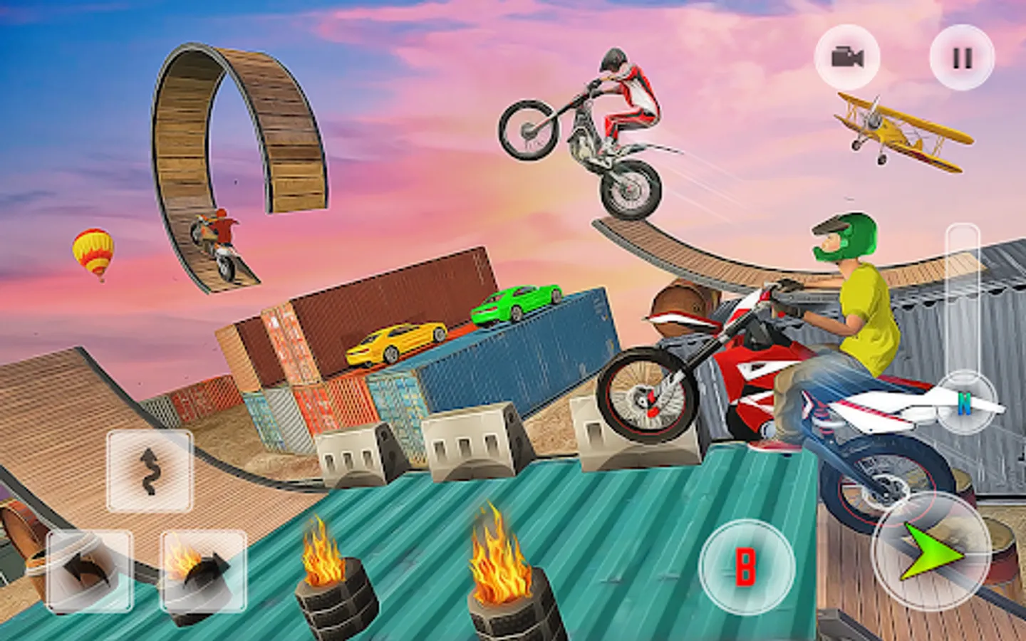 Use your stunt tricks master approach from bike racing 3d game and bike driving techniques and complete the finish point showing crazy bike stunts in the bike simulator game. Dangerous tracks are designed for crazy bike stunts lovers, that's why bike race is a leader of racing game all across the globe. Impossible crazy bike stunts on deadly speedy tracks are challenged stunt bike racing game. If you wanted to play racing bike then this simulator game with good stunt is the bike stunt game. Come and select your racing bike for the stunt game. Control of racing game show similarities to real bike stunt when this real stunt bike games performs extreme stunts on impossible mega ramp sky tracks. Stunt bike games grant enjoyed daily crazy bike stunts game. The driving game and stunt bike games will provide you good stunts adventure and extreme stunts and racing games. Now it’s time to test your bike riding and bike racing or racing stunt skills, just click to start the crazy bike stunts 3d game and enjoy the adventures journey.