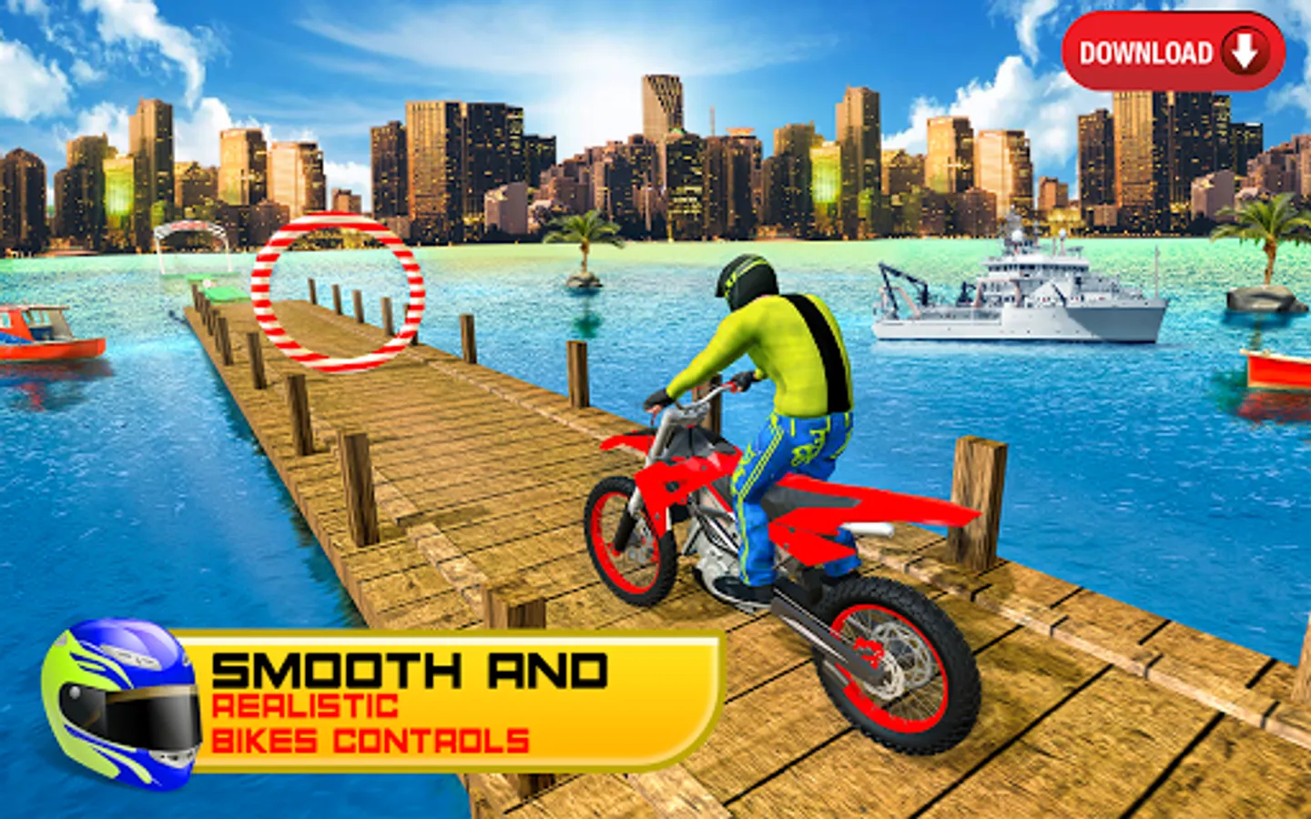 The Upgraded version of bike stunt racing games 3d is available with impossible back flips. You can also change different camera angles. Learn tricky bike stunts to complete the challenging tasks on time. Fresh motorcycles are added to our stunt bike games to complete insane stunts. You have to become a pioneer of mega ramp bike rider. Perform different front flips and back flips by playing our crazy bike stunts 3d. Ultimate thrilling features are designed in our bike stunts 3d for your competence. You have to cross all the hurdles of the stunt bike 3d race by crossing all deadly speedy paths. We provide realistic sound effects.