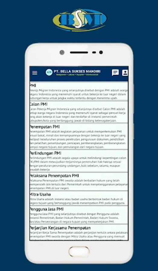 PT. Bella Sukses Mandiri, known as "BSM" is an Official Company for the Placement of Indonesian Migrant Workers which has obtained permission from the Indonesian Minister of Manpower to place TKI/PMI workers abroad.