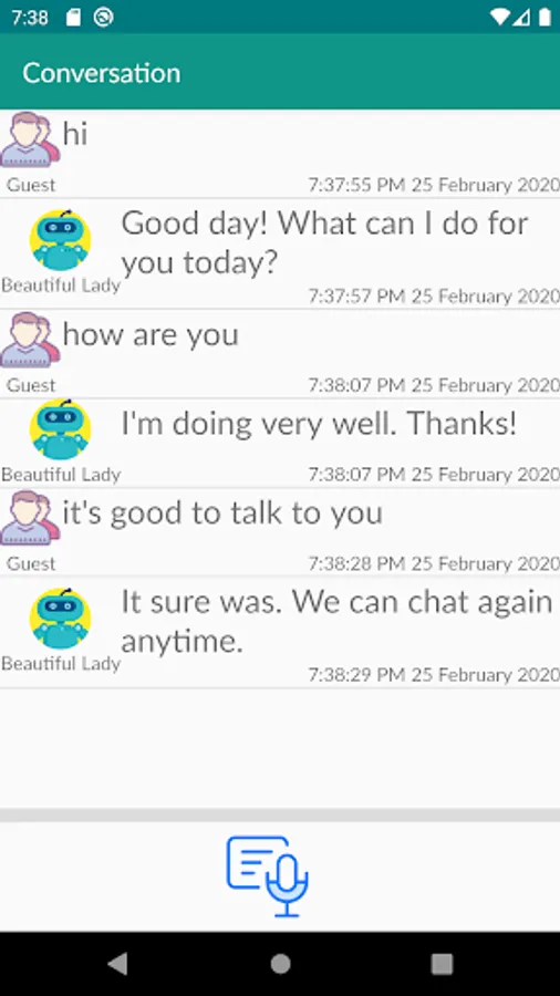 Application is a simulation of human conversation. Where we can make virtual AI friend and can have an English conversation with him/her the same way as we do with day to day people. AI Friends understands topics like Small Talks, Love, Jokes, Quotes and many more.