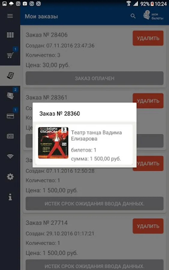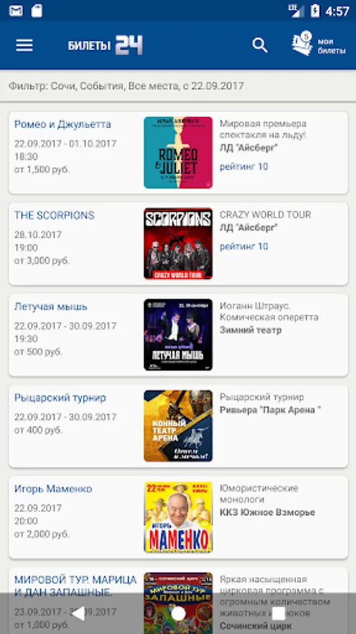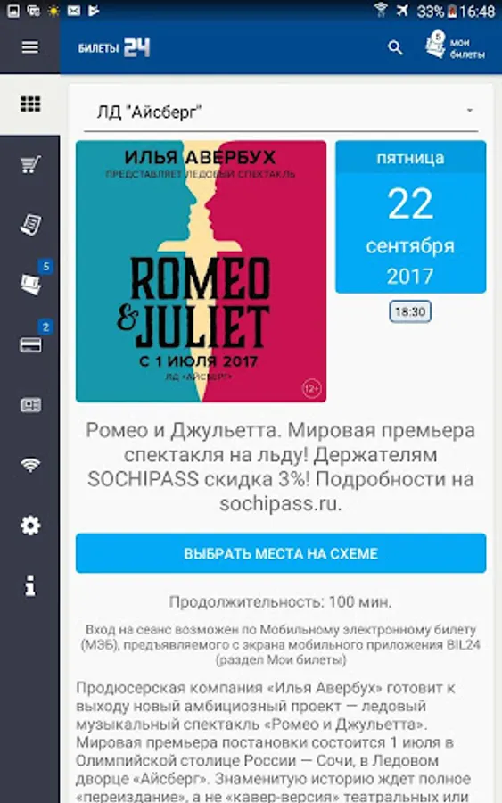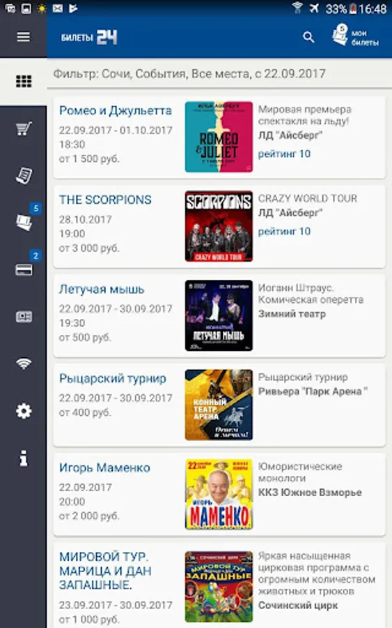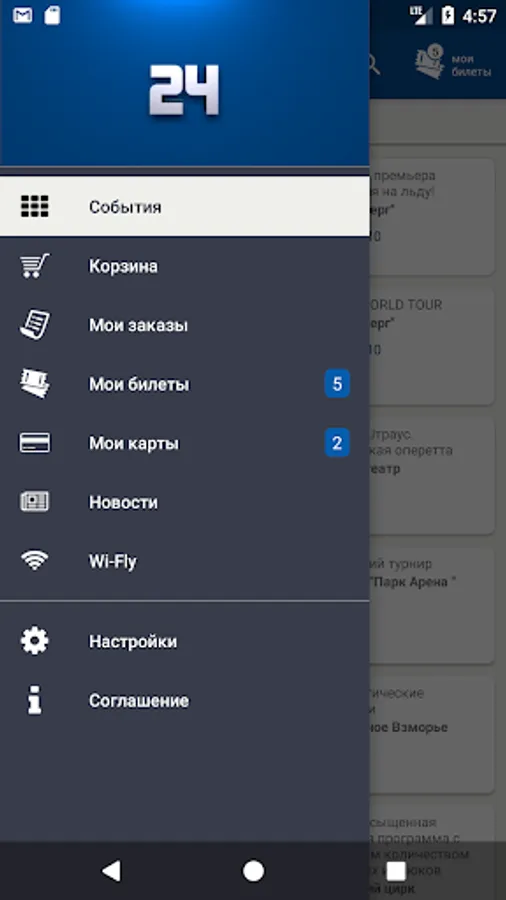 Install the application "24 tickets" so without further action, quickly and easily buy tickets to entertainment events. Our advantages: