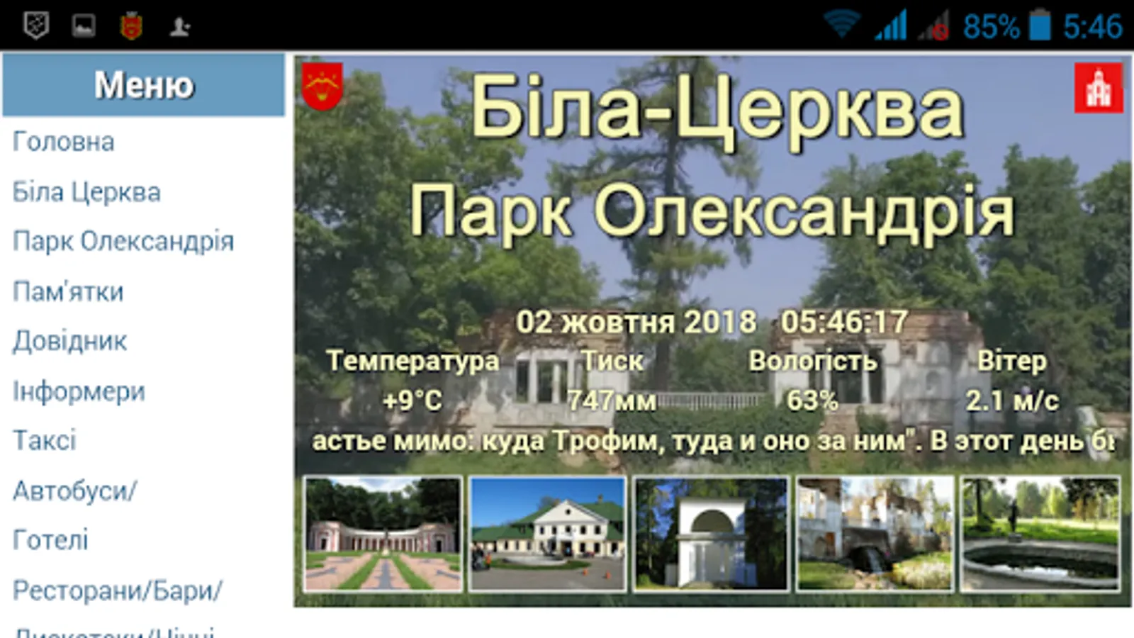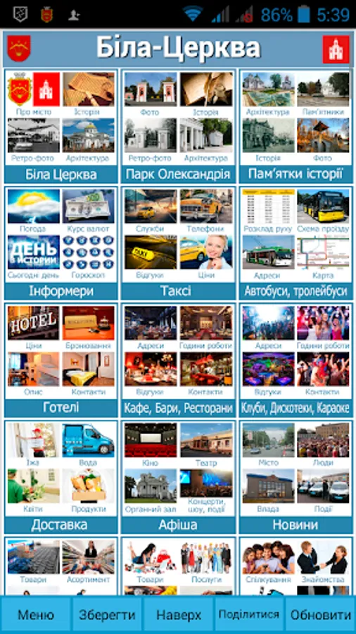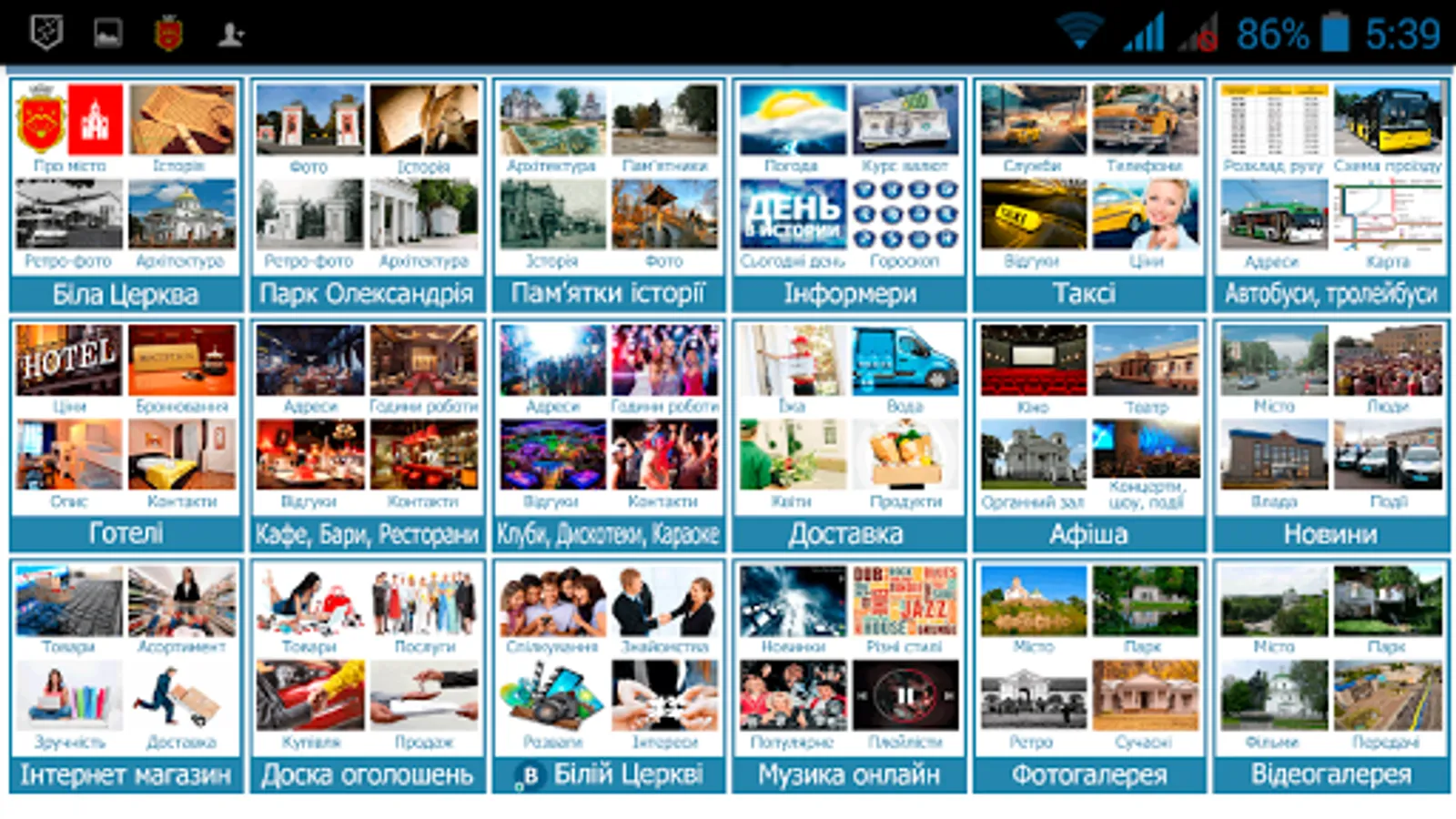 The mobile application is an informational guide in the city of Belaya Tserkov and Bila Tserkva district.