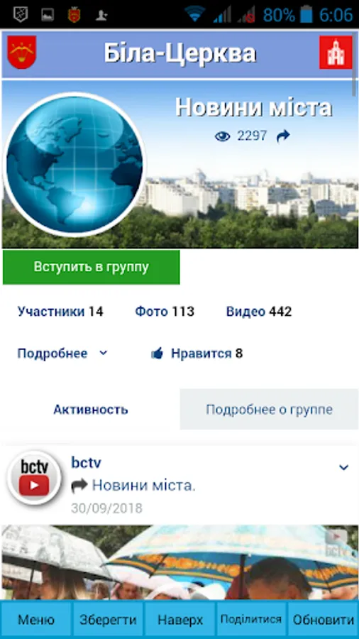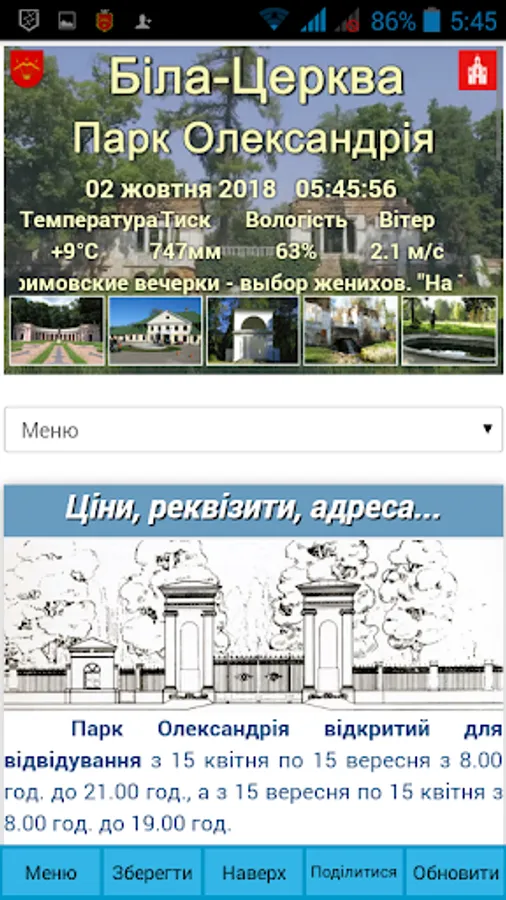 The functionality of the program allows the maximum amount of information to be obtained about the city of Bila Tserkva.