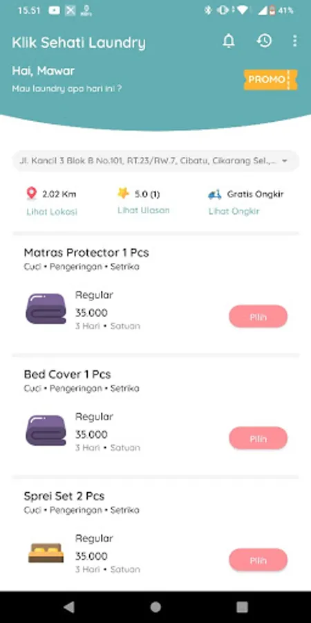Online Laundry, Can Pick Up, Monitor Your Laundry Status From the app Click Sehati Laundry