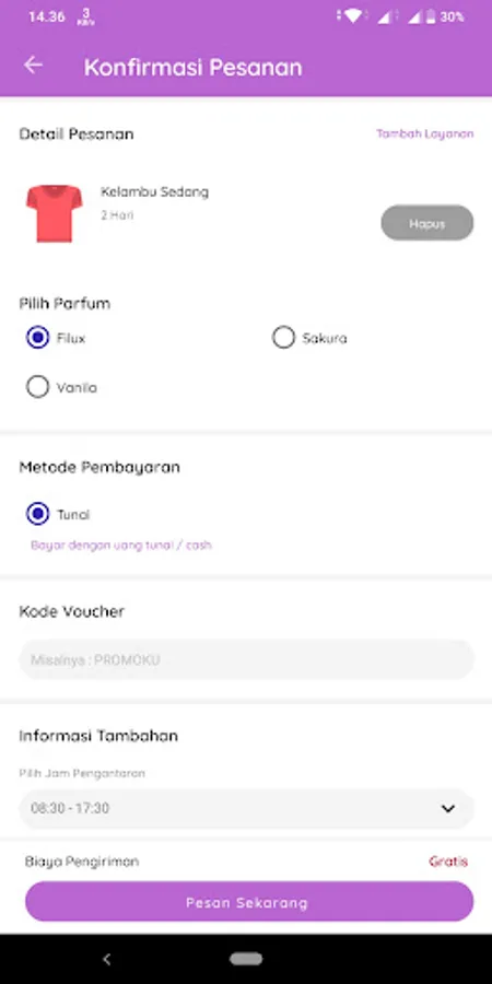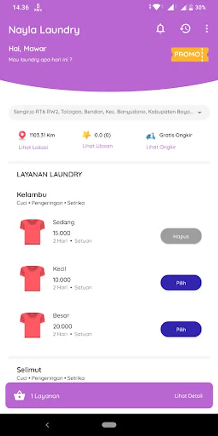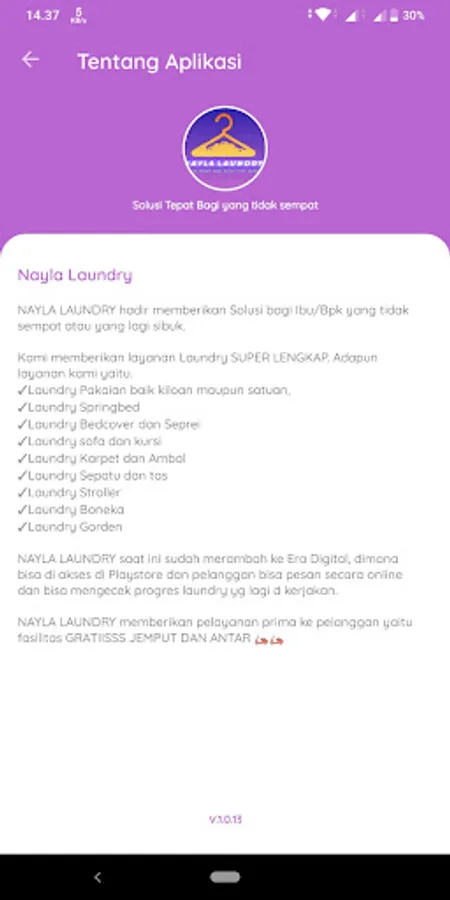 NAYLA LAUNDRY provides excellent service to customers, namely FREE PICK-UP AND DELIVERY facilities