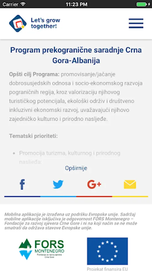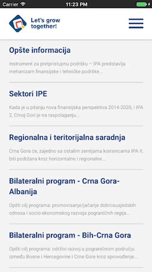 EU. Aplikacija sadrži informacije o programima podrške EU, aktuelne pozive za dostavljanje prijedloga projekata koje finansira EU, procedure prijavljivanja na konkurse EU, razvoj i upravljanje projektima i druge relevantne informacije.