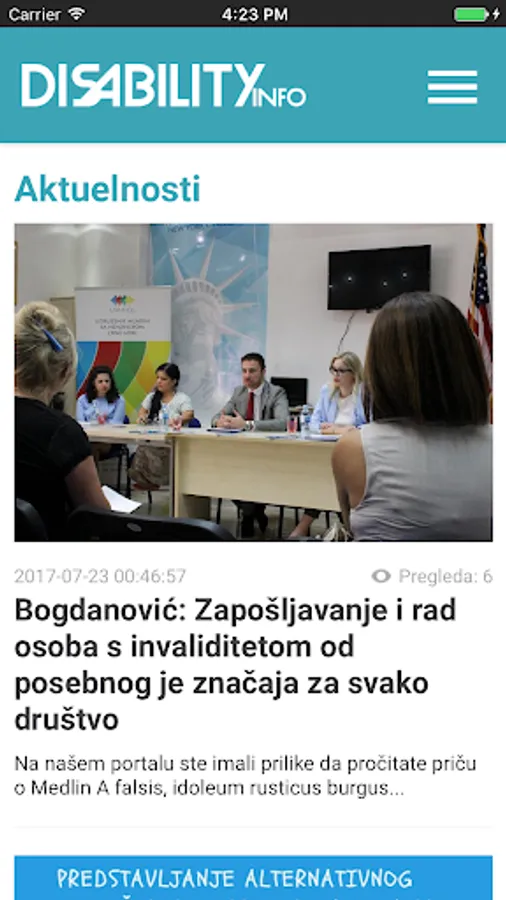 Informativna aplikacija koja promoviše i doprinosi ravnopravnom položaju mladih sa svim vrstama invaliditeta u društvu kroz inicijative i aktivnosti za uspostavljanje zakonskog, obrazovnog, kulturnog i socijalnog okvira koji to omogućava.