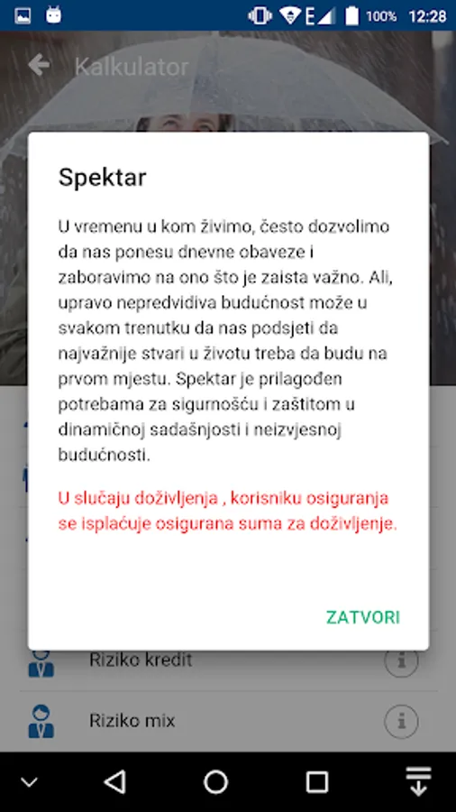 Besides making the calculations, the application also includes other features that will enable more efficient implementation prodajniih activities: sending offers to the e-mail address of the client, a scheduler, the ability to review the submitted bids, the documentation necessary for contracting / polisiranje, marketing materials, and documentation in order to better service existing clients.