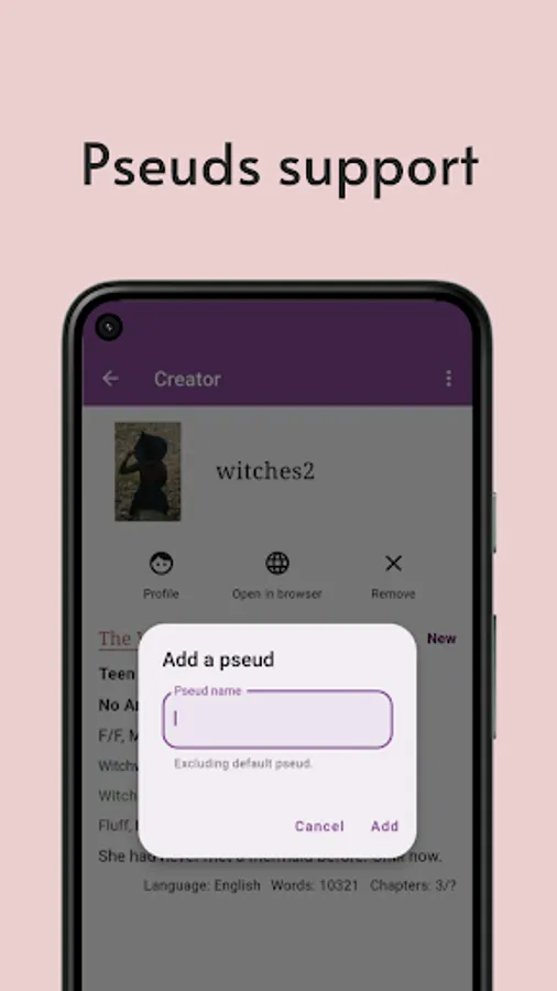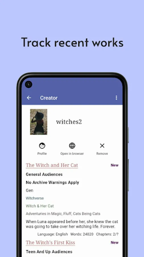 * Authorial saves the username of creators and chapter count of works. The content of works is never saved.