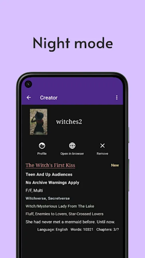 Authorial is an unofficial app for the Archive of Our Own. It is not fully featured and is not a replacement for AO3 on a web browser.