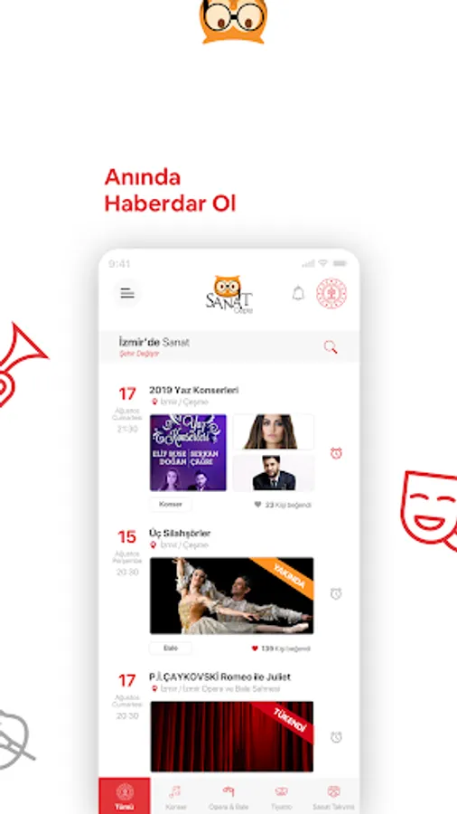 In this application T.C. It is aimed to announce the art events to be realized by the Art Units affiliated to the Ministry of Culture and Tourism and to provide event tickets. Moreover, thanks to the developing technology, it is possible to reach wider and mobile masses.