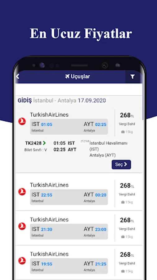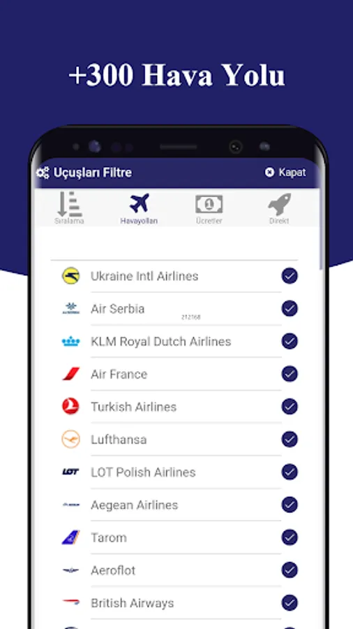 Offering the easiest and fastest solution to the search for cheap flight tickets and suitable flight tickets, Biletivo's mobile application offers the opportunity to examine the flights of more than 300 airlines both at home and abroad simultaneously on a single screen. Thanks to Biletivo's mobile application, you can easily compare the flights of different airlines and buy cheap air tickets at the most affordable prices by examining the flight you want from anywhere.