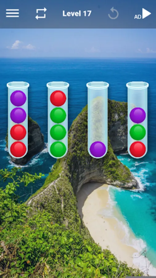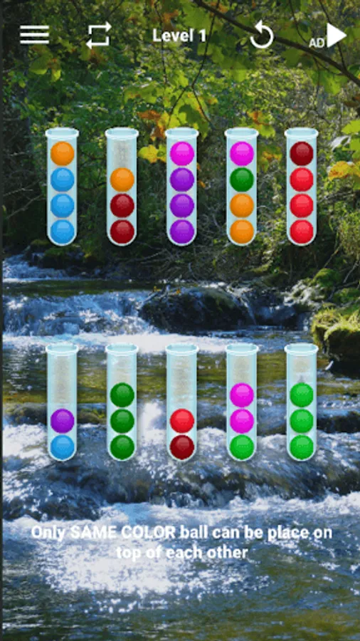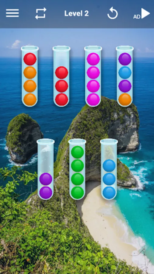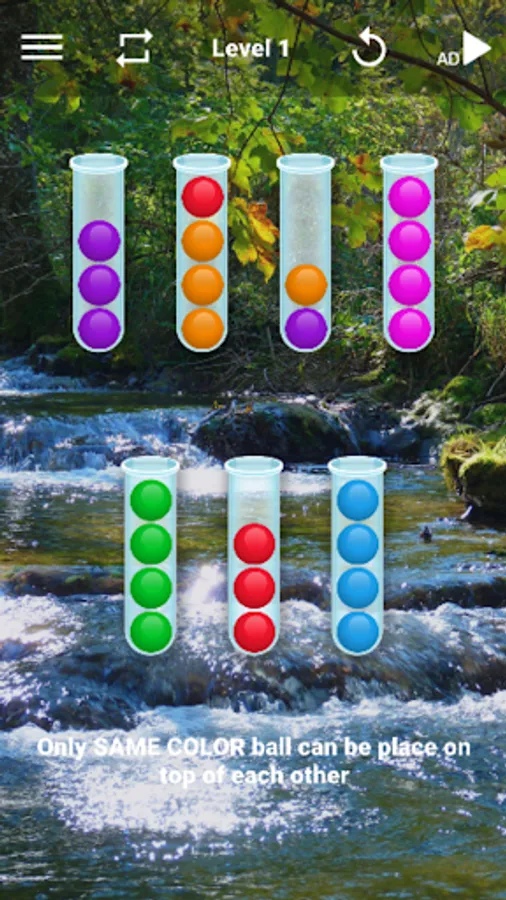 It is a fun colored balls sorting game. In the game, you can train your brain by putting different colored balls into beer. Daily work can be routine in our daily life. We need to keep our brain alive to increase awareness. Have a good intelligence by choosing easy and difficult levels with the ball game. Choose the difficulty as you like, enjoy the life and the game. Troubleshoot problems and build happiness. Play games, feeling like you're walking on a florida beach. If they ask you to separate different colored waters, it won't be difficult for you.