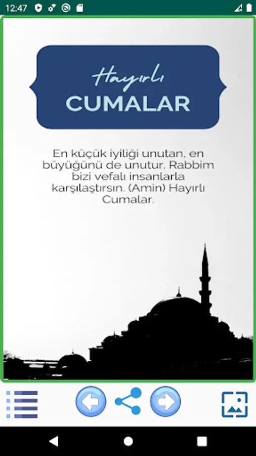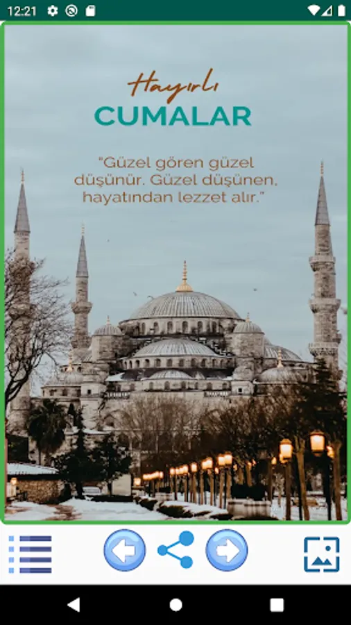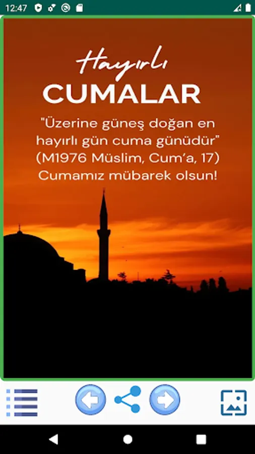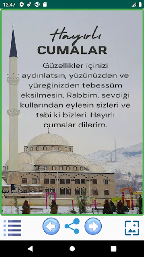 You can download our application for free and send picture messages to your loved ones and share them easily with one click from your social media accounts. You can congratulate your loved ones on Friday with verses from the Qur'an and hadiths. Share beautiful, meaningful, blessed words with this application on Thursday nights, holiday messages and on your special days. You can make the day meaningful by sending Friday messages when it's time for azan. You can give advice to your friends with this application, which is indispensable for prayer times.