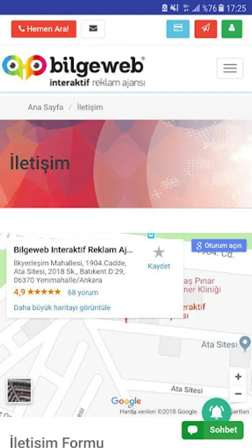 In order to reach our customer representatives can call our phone 0312232 23 50 or send an e-mail to info@bilgeweb.co No. mailbox. If you do not want to open your e-mail program, you can use the contact form on our site to send your messages.