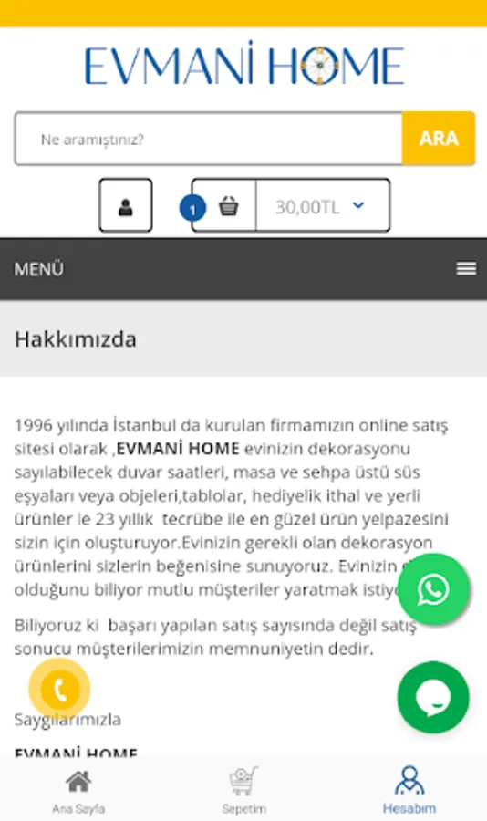 As the online sales site of our company, which was established in Istanbul in 1996, EVMANİ HOME creates the most beautiful product range for you with 23 years of experience with wall clocks, table and coffee table ornaments or objects, paintings, souvenirs and local products that can be considered as decoration of your home. We offer the necessary decoration products for your home to your liking. We know that your home is valuable, we want to create happy customers.