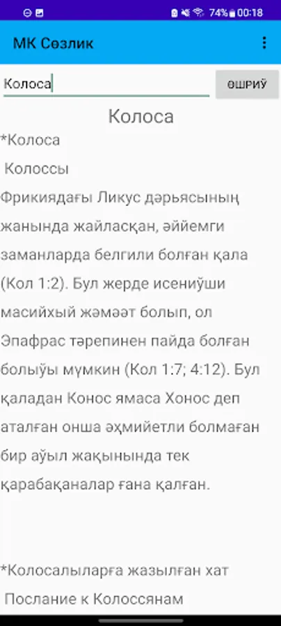 This application is for Karakalpak language users, who need Dictionary for Karakalpak bible