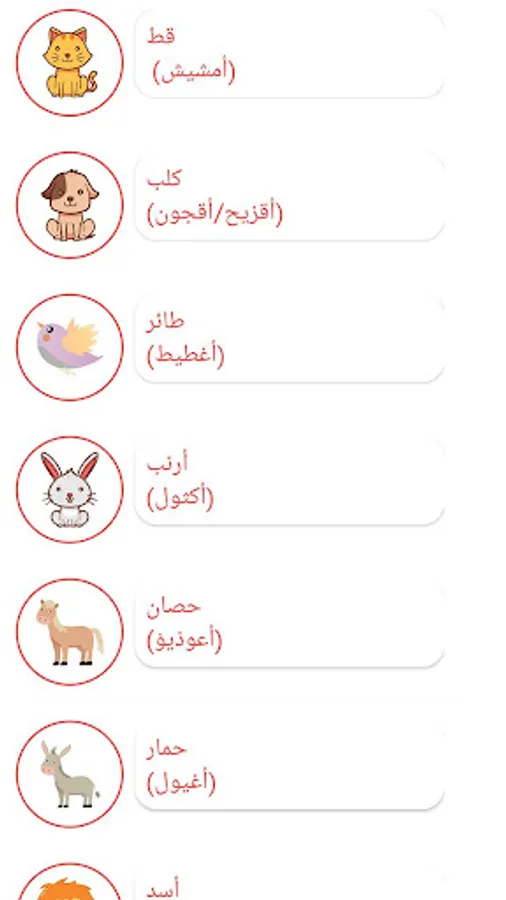 Azoul : تعلم اللغة الامازيغية يساعدك في تعلم اللغة الامازغية بشكل بسيط و ممتع بحيث تتعلم اكثر الكلمات استخداما في اللغة الامازيغية عن أفراد العائلة و الالوان و الارقام كما انه سيتم اضافة التعليق الصوتي لتعلم نطق الكلمات و المفردات مع تحديثات أخرى كأكثر الجمل استعمالا في الحياة اليومية و الكثير من المصطلحات في مختلف الفئات مثل الحيوانات , الاكل , الاشياء المادية ... الخ