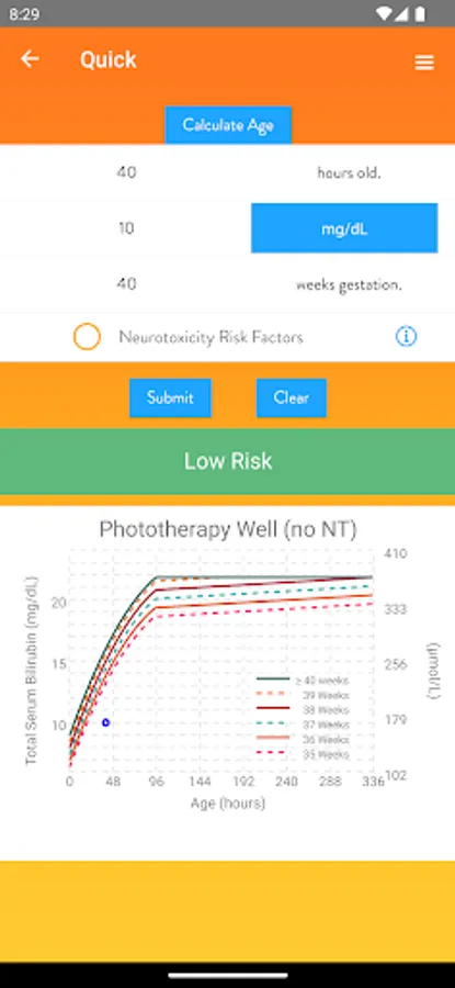 -Calculates phototherapy threshold for newborns 35 weeks and older