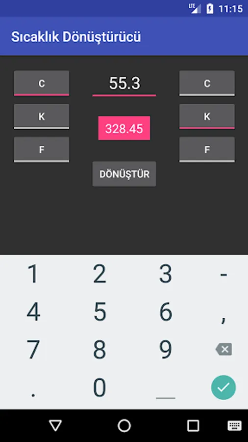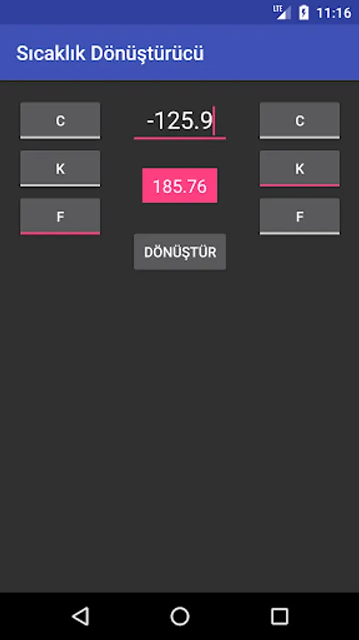 This application Celsius, Fahrenheit and Kelvin temperatures converts.