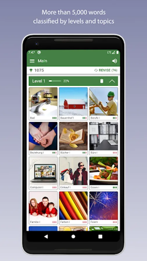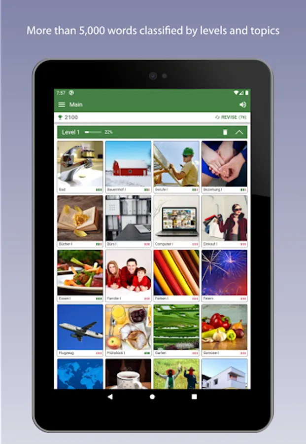 Free app to learn German by improving your VOCABULARY in an easy and fast way, with more than 5,000 words classified by levels and topics.
