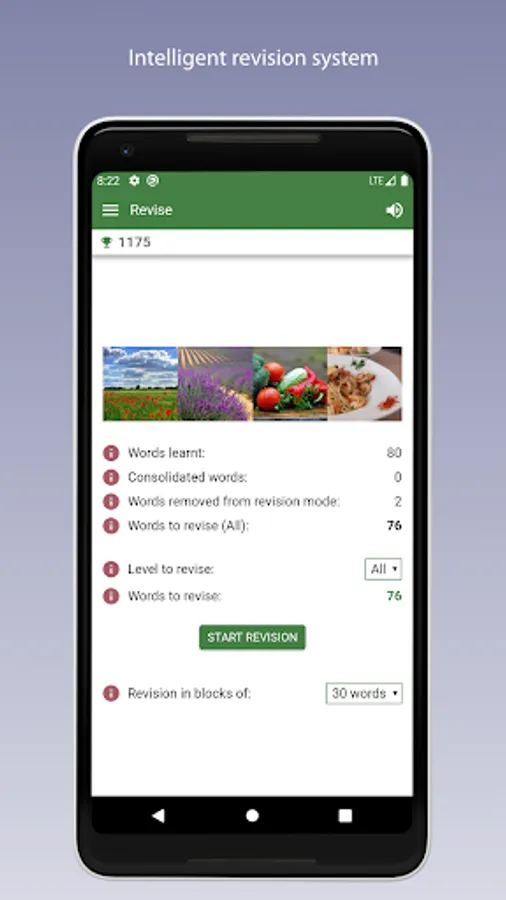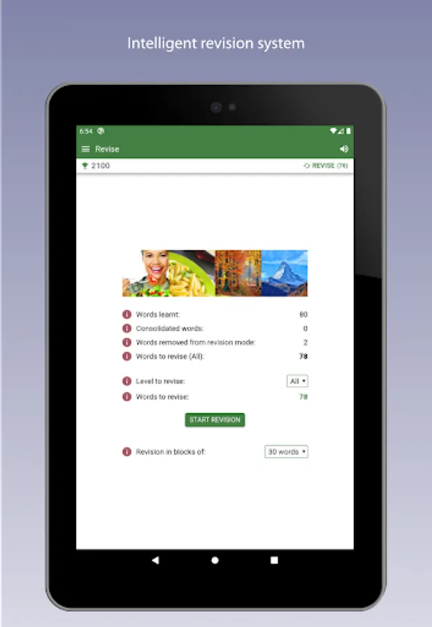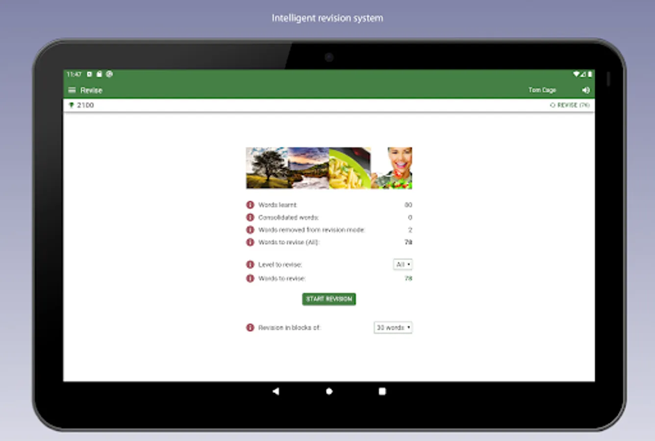 - Intelligent revision system which will make you revise the word according to your hits and mistakes. The more often you get a word wrong, the more often this word will be revised until you remember it.